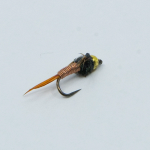 Nymphen imitieren Insektenlarven unter Wasser. Sie werden mit oder ohne Gewicht angeboten und sind besonders effektiv beim Fischen auf Forellen, Äschen oder Felchen.