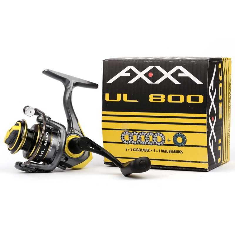 Kleine Hochleistungs-Rolle für das Fischen mit Micro-Kunstködern. Die AXXA Angelrolle UL 800 besticht durch ihr angesagtes Design, durch moderne Technik und feinste Laufeigenschaften. Mit 150 Gramm Gewicht geht sie als echtes Leichtgewicht durch. Die Alu-Weitwurfspule macht präzise Würfe zum Kinderspiel.