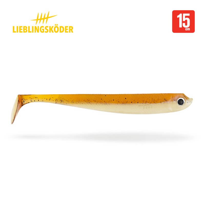 Die 15cm Lieblingsköder sind ideal, um Hechte und grosse Zander zu fangen. Die extra weiche und flexible Gummimischung kann von den Raubfischen ohne grossen Widerstand eingesaugt werden und minimiert die Gefahr von Fehlbissen. Die hochfrequenten Schwanz-Bewegungen imitieren bei schnellem Zug einen Beutefisch auf der Flucht, dabei unterstützt die Form des Körpers den Lauf des Köders und der Körper entwickelt eine leichte Flankbewegung. Besonders für diese Gummifisch-Grösse geeignete Jigköpfe: Lieblingsköder Spitze Haken Grösse 5/0.