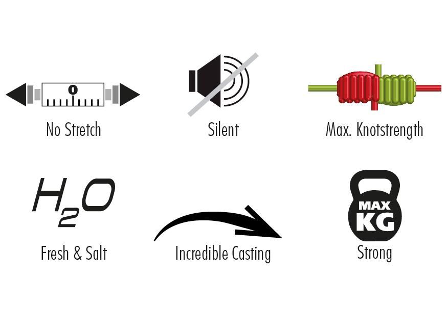 • 8‑fach geflochtene Premium‑Schnur aus hochmodularen PE‑Fasern